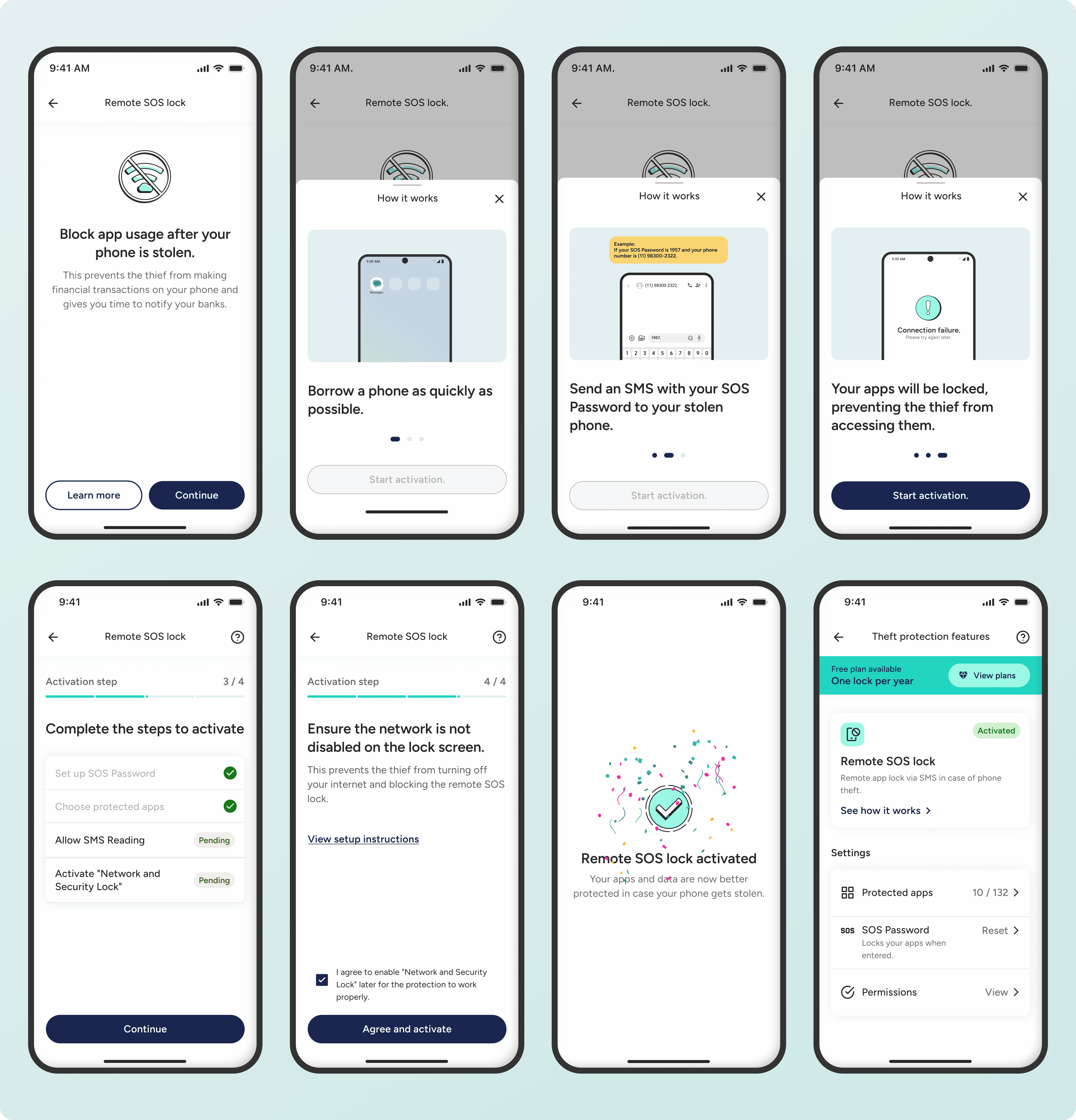 Social and financial apps are vulnerable in the wrong hands. Remote SOS Lock is a feature that blocks apps remotely, preventing thieves from making transactions and giving more time to notify banks.