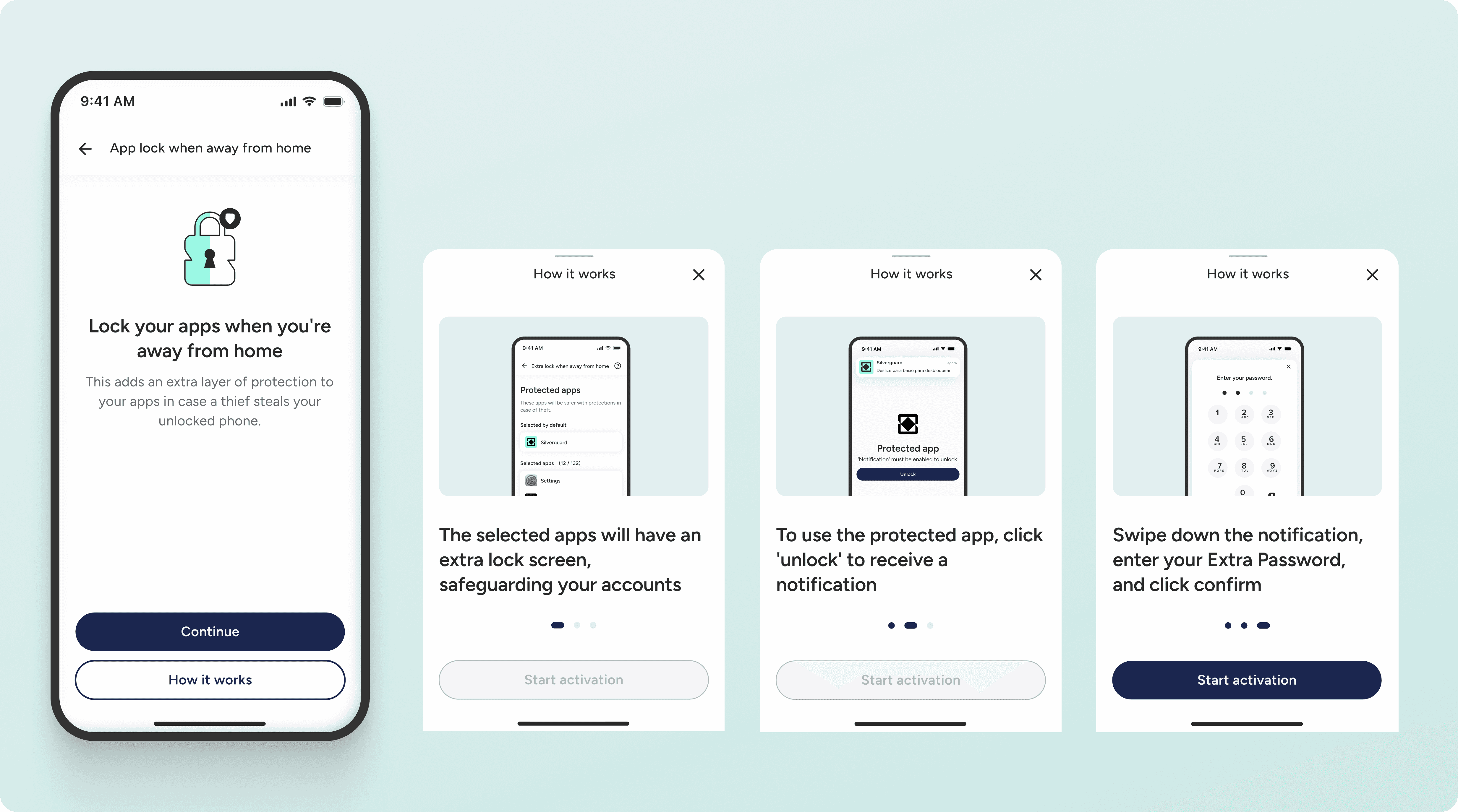 App Locker asks for an additional PIN to protect sensitive apps. To reduce friction, the PIN is only required when users are on the streets or an unsafe place.